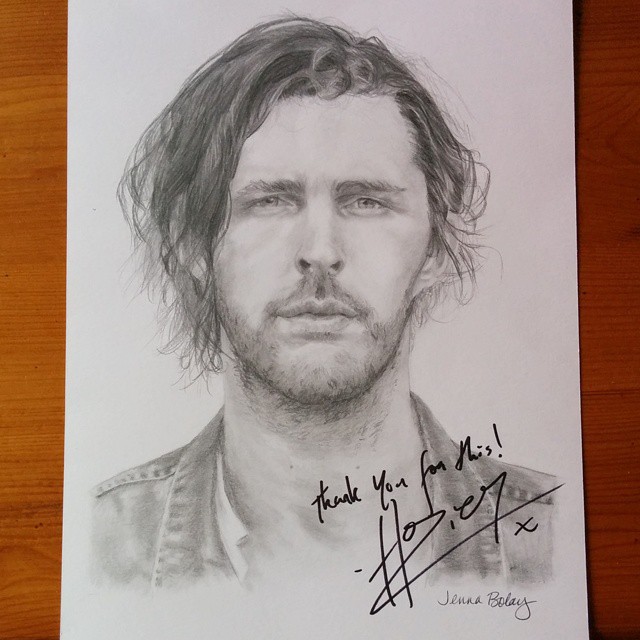 Did you ever have something that is pretty freaking awesome that you want to share and tell people about but you want to keep it to yourself for a few days? I cannot thank @hozier enough for being so very sweet and very supportive. When you give art, you give a piece of yourself, I feel, and for him to have said such lovely things and appreciatively accept the portrait I did for him means the world to me.
