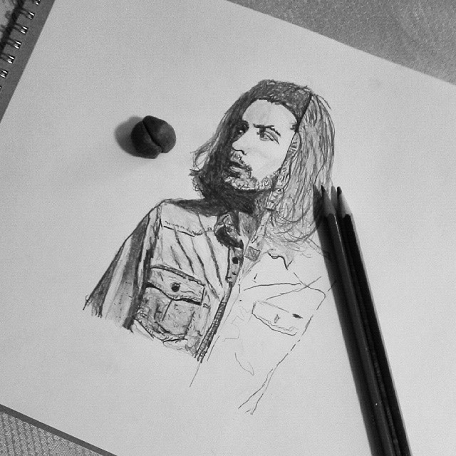 Drawing #Hozier . Yes, the hair is supposed to look like that it just needs more shading. Im combining his album cover with his actual pic, got a lot to finish...emoji #LotsOfShading #Drawing #IHateThisShirt #AlbumCover #Progress