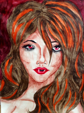 Often times my work is inspired by music. This one is inspired by “Cherry Wine” by Hozier. This wasn’t originally going to be a vampire but the line in the song goes, “Blood is rare and sweet as cherry wine” so I figured why not.