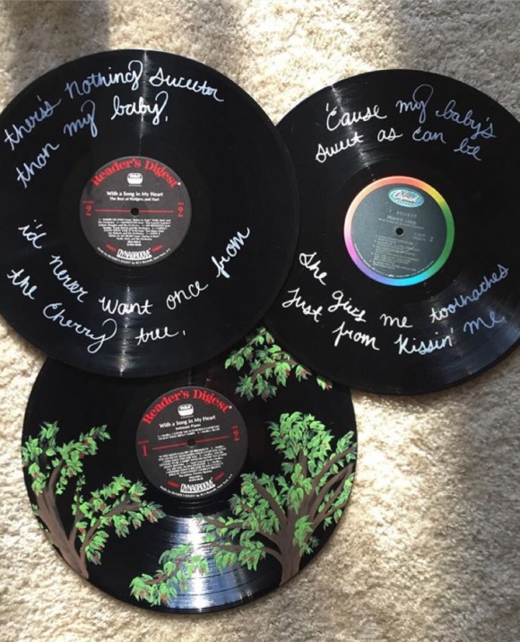 Repurposing Vinyl, “Cherry Wine”  a Sweet Anniversary Gift.  Lyrics by Hozier, The Art is by the Romantic Artist @jinxxvoodoo