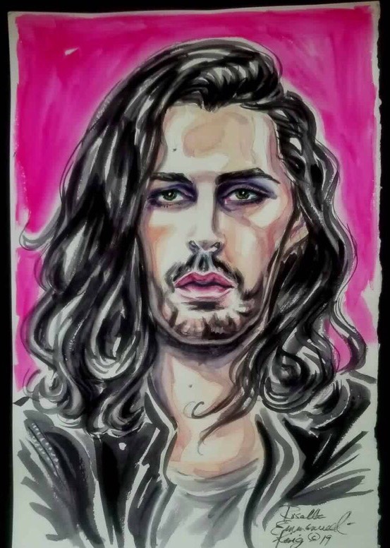Singer, Songwriter, Musician, Composer, Poet, Humanitarian, Activist & Feminist #Hozier. The Art Is By Featured Artist Rosalba Emmanuel-King @Rosemanuelking Her Painting #699 of Hozier
